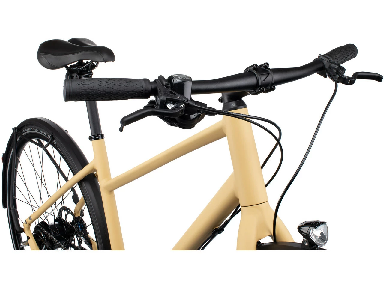 Natürlich macht auch Modell 1 Campus für Damen dem Namen „Vortrieb“ alle Ehre: Der Rahmen ist steif und wandelt jede Pedalumdrehung effektiv in Vortrieb um. Die starre Gabel und der breite Lenker sorgen für ein reaktives Handling. Die Bremsen langen richtig zu. Die Sitzposition ist sportiv und zentral. Hier bleiben wir uns und dem Markennamen treu – und das ist einfach konsequent.