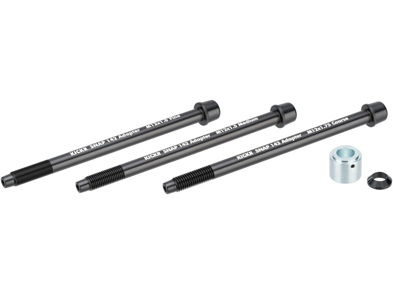 Dieses Set enthält alles, was Du benötigst, um die meisten Mountainbikes mit einer 12×142-mm-Steckachse auf dem KICKR SNAP zu befestigen.
