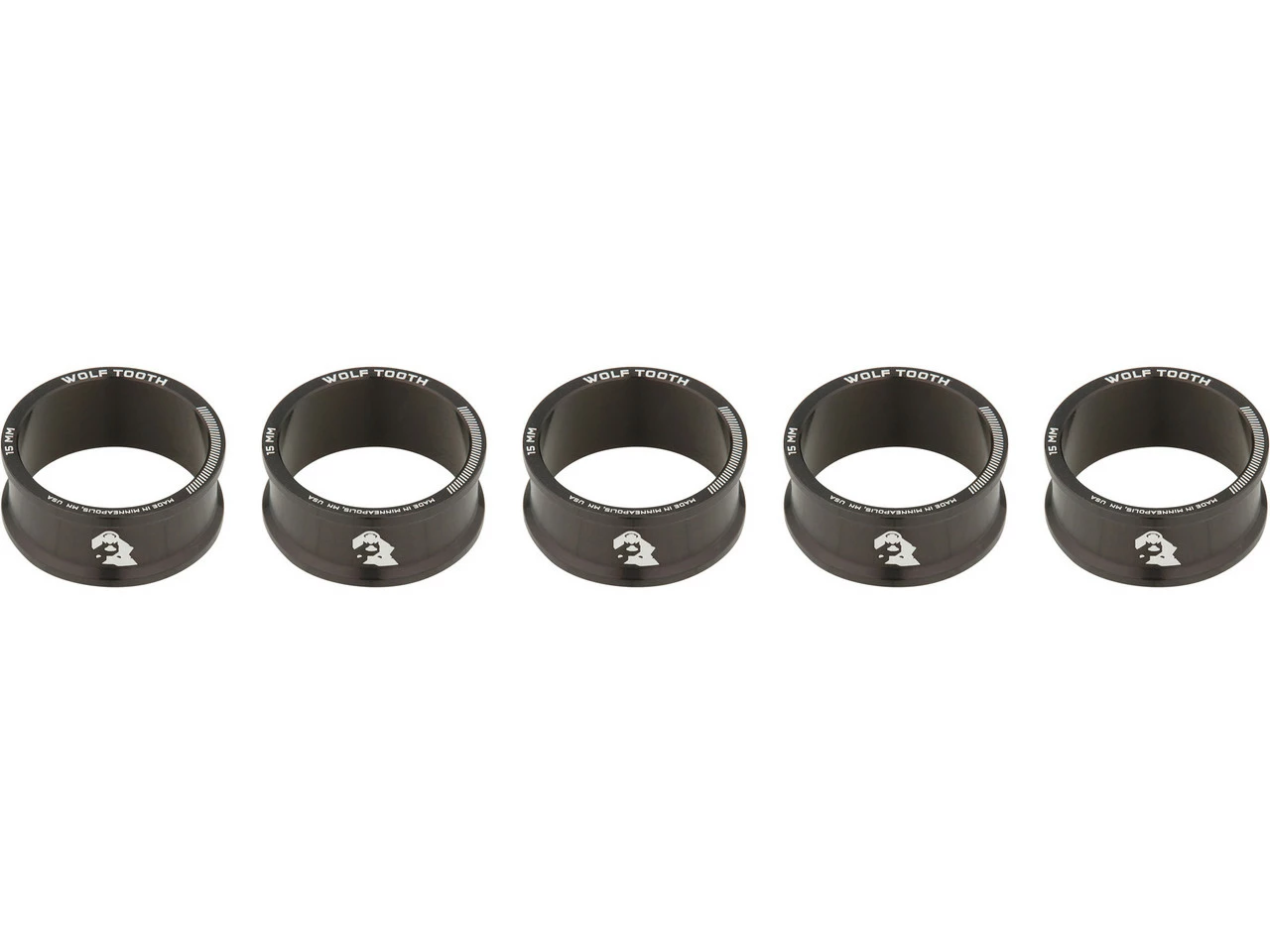 Die Wolf Tooth Components Precision Headset Steuersatz Spacer sind in Größen von 3 bis 15 mm erhältlich, sodass Du problemlos das Richtige für Dein Cockpit findest.
