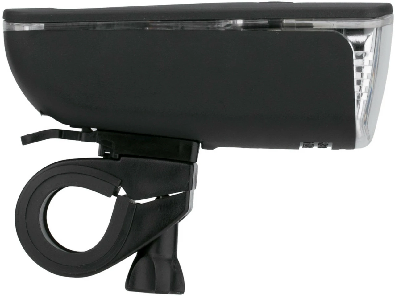 Spezifikationen:Ausführung:Frontlicht (weiß)Material:KunststoffLeuchtmittel:1-W-Power-LED (1)Leuchtkraft:20 LuxLeuchtmodi:2Betriebsmittel:3 x Batterie (AAA)Spannung:1,5V / 1 WLadestandsanzeige:JaMontage:Lenkerhalterung CL-F13Freigaben:Zulassung im Straßenverkehr:Ja, für Fahrräder nach §67 StVZOPrüfziffer Frontlicht:K~~1236Features:Frontlicht kann wahlweise im Powermodus (22 Lux) oder Energiesparmodus (11 Lux) betrieben werdenmit BatterieindikatorLenkerhalterung CL-F13 passend für Rohrdurchmesser von 19 bis 31,8 mmLED im Frontlicht mit 1 WHerstellernummer:2500217100